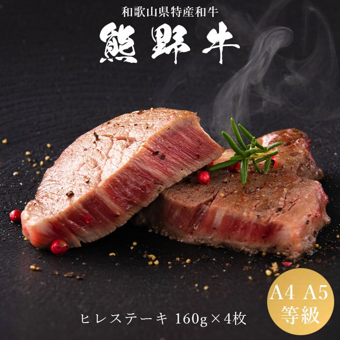熊野牛 A4・A5等級 ヒレステーキ 160g×4枚 和歌山県特産和牛 ヘレステーキ 和牛 お中元 お歳暮 誕生日 母の日 父の日 【GR01】